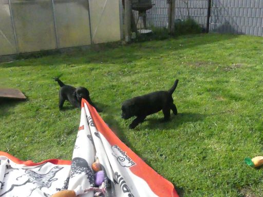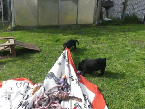 Die Welpen sind jetzt 5 Wochen alt und haben ihre Gartenresidenz bezogen. Tagsüber genießen sie ihre Zeit im Garten, wo sie nach Herzenslust spielen und die frische Luft genießen können. Der Garten ist mit allerlei Spielzeug ausgestattet, das die Welpen beschäftigt und ihre Sinne anregt. Sie tollen durch das Gras, erkunden jede Ecke und haben sichtlich Spaß an ihrer neuen Umgebung. Hier können sie sich austoben, neue Erfahrungen sammeln und weiterhin unter unserem wachsamen Augen groß werden.